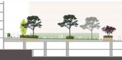 At the heart of the scheme is one large public space with planting, this is located over basement car parks. This car park provides all the parking for this development. This central landscape, as well as providing amenity space for residents and visitors to this development, must provide service vehicle access across the site. The planting in the central part of this site is maritime in nature and is planted through a mulch reminiscent of a dune landscape.