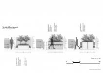 The structure is conceived of recycled plastic sheets which creates a rare opportunity for local residents/ community members to assist with the removal of waste from the conventional waste streams (which might end up in a landfill site). Thereafter this waste would be cleaned, granulated and prossessed to form a new product. Made from 100% recycled materials, these UHMWPE/HDPE sheets are sustainable and long-lasting building materials with exceptional UV, water and weather resistance, hard, dense, rigid, can be fixed using adhesive and graffiti proof. Furthermore the manufacturing process uses between 50% and 70% of the energy that would be used to create sheets from virgin material and gives off no harmful fumes whilst being processed.