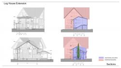 Additional buildings are consisted of three blocks which the first one is used as the main living room, the second one is the main entrance hall and the third one is the joint block. The joint block connects all three consequent new blocks to the main old housing of 150 m2.