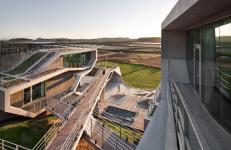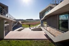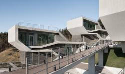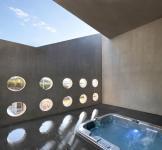 A tent of great attraction _ The distinctive features of Moken are concentrated inside the resort complex. The only possible advantage of the site of Moken is that the site is sloped. However, if the buildings fail to take full advantage of this point, the sloping of the site will only be a serious obstacle. To respond properly to the slope, the shape of the buildings are folded, rather than straight, when seen from above, and each unit is built on a different level of elevation – with a difference of a half-story height between each. A buffer zone was required to deal successfully with the sloped land and the building layout/combination at the same time. This buffer zone was developed into an open air space attached to each individual unit, with this space reflecting the themes of parties and open-air bathing. Visitors can experience the seasonal changes of landscape and the daily lapses of time through the changing direction of the sunlight. Various big and small spaces for refreshment face each other without changing the original gradient of the site and these spaces are interconnected with bridges and roof gardens that can also be accessed from the inside. Moken explicitly shows visitors that city-style architecture can still work in the countryside. Allowing people to escape from everyday life is not about letting them experience something completely new. Rather, people can experience “Accidental Encounter”, as Louis Pierre Althusser puts it, when they travel and get into contact with a familiar space at an unexpected spot.