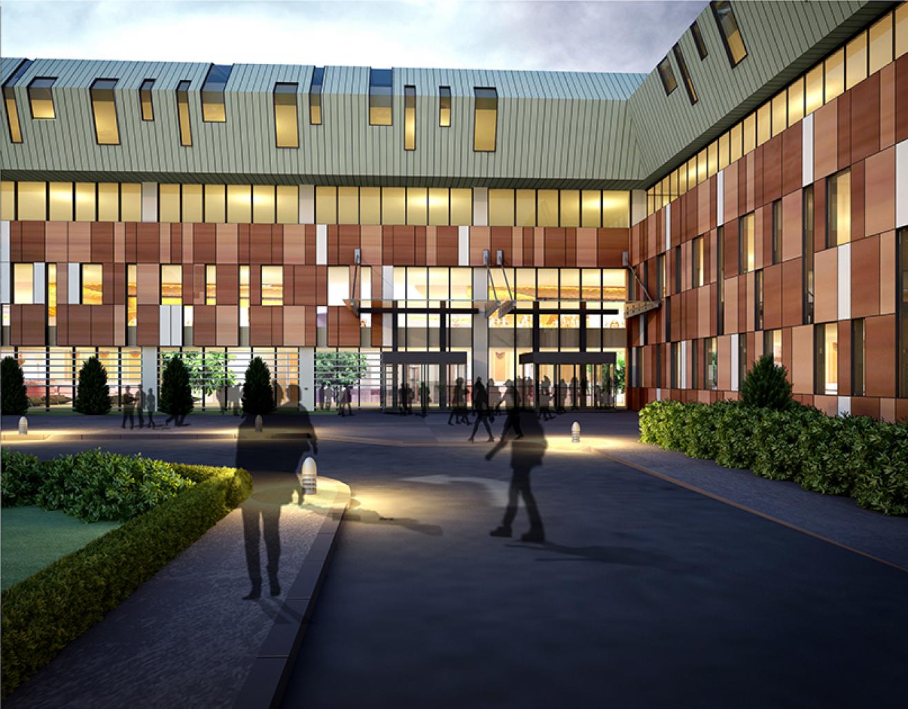 Climate is one of the major concerns in design. Roof is considered as whole structure where on the third floor it turns to be used as façade covering. Roof slope that continues through the patient rooms affects the concept of design.