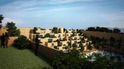 The opposite south facing sides are shaped into open stepped platforms along the site’s contours further generating landscaped spaces and creating a large community space as the traditional stepped wells had.