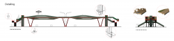 The Ribbon Bridge project tries to redefine the original idea of a classic bridge, which is a connection between two points in a most convenient way. This project argues that these infrastructural spaces can also serve as public domains of a city and not to be used just for passing, but for staying too. The Ribbon Bridge provides every user with different scenarios, a different and unique path. It states that while people who are in a hurry should have a straight path to cross the bridge, others can spend time on it and enjoy the view, it also suggests that while crossing a highway is a linear form of movement, lines can join to form a platform which serves as a public space in the middle. The formal language of the bridge, is nothing but a visualization of its idea, it takes a simple rectangle and inserts the desired spatial complexities via divisions provided by cutting the surface and shaping the ribbons.