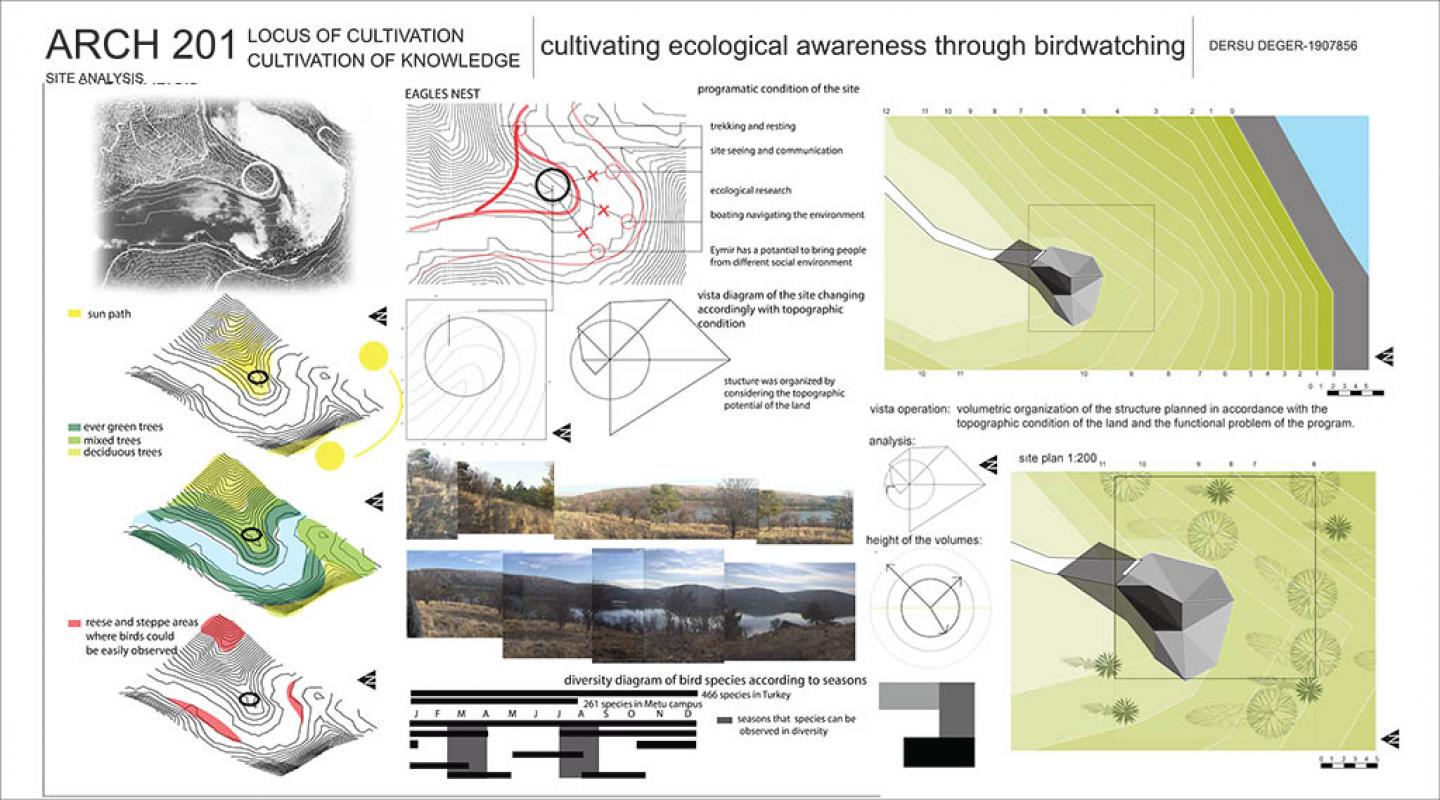 Aim of the programme was to rethink the Eymir lake as a space of cultivation, resulting programme was to design a construction for birdwatchers in Eymir lake, METU campus, Ankara.