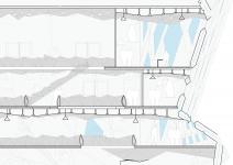 TRC is a competition happened in summer of 2012-2013. The competition brief is taken and being developed later in the studio. The folding method is in respond to the site context which continued from outside into the internal space to achieve a high complete building experience. Local building codes, popularity flow and so on, which all determine the form of the building. The project site is located in Akihabara - a site that famous for its animation and electronic products. The intense advertisement and performing facade have been captured and used as my design inspiration. The windows on the facade aim to provide views for people inside the building, and those activities inside the buildings are transparent to outsiders which works as a billboard/advertisement.The folding building form draws it difference from its surrounding buildings which would also encourage people to visit. The ground floor is open as a plaza for people to walk through and access from the lane way next door. An after hour access is considered and placed throughout the building. The project is a replay center that contains Karaokay boxes, cinemas and retail shops.