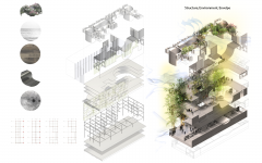 The project explores the potential to innovate within a highly defined building envelope in a dense urban condition. With a prescriptive constrained volume in an infill site, one has developed designs for a school of architecture for 100 students, including micro-housing for 25 students and a public gallery. The program operates between extremes public and private. Project retains its own identity while integrating within and filtering its environment. Central to developing the project as a comprehensive design project is the questioning of the relationship of autonomy to integration. There is an integral focus on the interface between the construction systems developed and the various environmental and services systems required for the functionality and programming of the building while retaining flexibility and heterogeneity of spaces. It provides a tremendous formal freedom along with scalar variation.