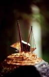From our predesign research came a clear understanding of the close relationship between tragedy and comedy. The plan of the temple was then developed from an abstraction of the infamous Shakespearean masks that represent tragedy and comedy. Dichotomy also plays a large part in the generation of laughter, so the site landscape was scarified to represent tragedy with a barren rock environment on the west side, and to represent comedy through a lush, forested landscape on the east. The rift between the two was referenced through the creation of a "seismic fault" along the adjoining boundaries. A shrub which has seemingly sprung to life as a seedling from the adjacent, dead tree is represents regeneration. The comedic landscape, while representing life, still features tree stumps and fallen trees as a reminder that death is inevitable.