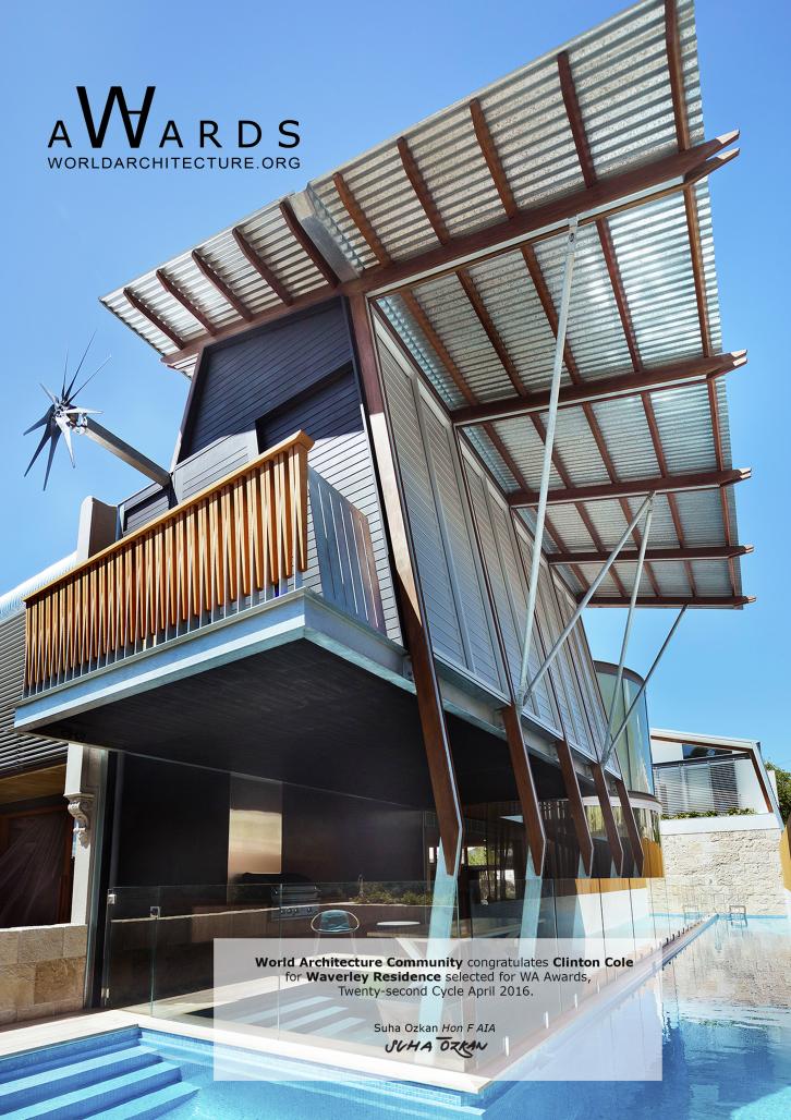 Waverley Residence by Clinton Cole in Australia won the WA Award Cycle 22. Please find below the WA Award poster for this project.