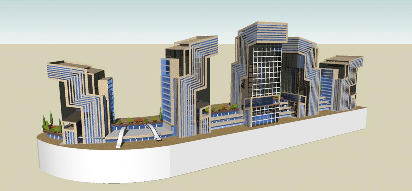 The Quintet Business Park is designed to be a modern office space in the city of Ramallah.