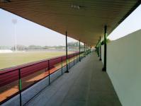 The V.I.P. pavilion has been designed for a seating capacity of 1500 persons. The design of the pavilion is governed by the factors like comfortable viewing angles, international norms for seating, provision of necessary facilities for players, besides the time and budgetary constraints. Meticulously designed pavilion accommodates changing rooms for players, wash rooms, pantry, lounge, entrance foyer and offices at ground level,that is underneath the seating steps.