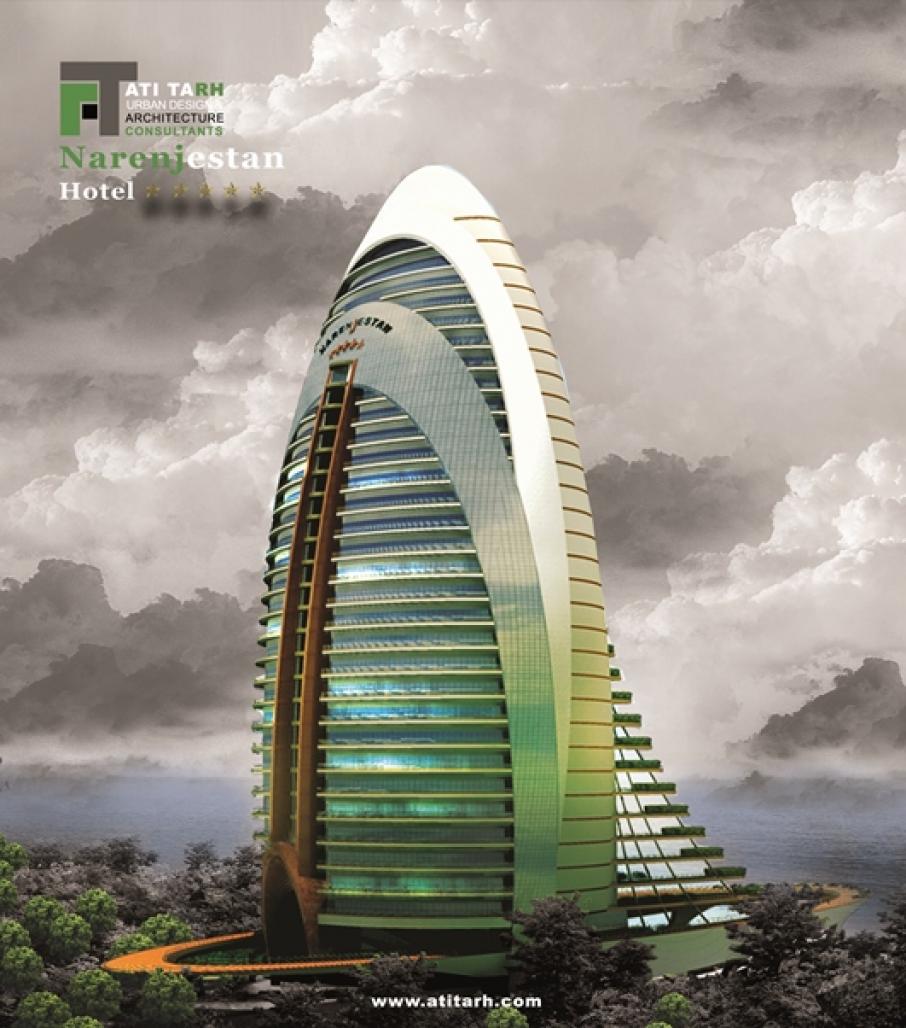 The Naranjestan Hotel is a 35 story building, a unique high rise that is either high-tech or sustainable.