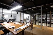 The project is designed around the contrasting aspects such as permeability and isolation between spaces, light and dark, black and white while the functional scheme between the offices,