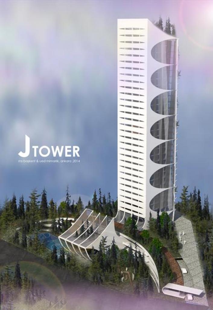 Creating an iconic tower was the main intention in the project. Letter "J" was tested as a tower. While the apartments are located in the tall arm of "J", the social amenities such as swimming pool, cafe, fitness are situated in the short one.
