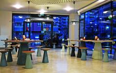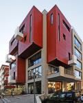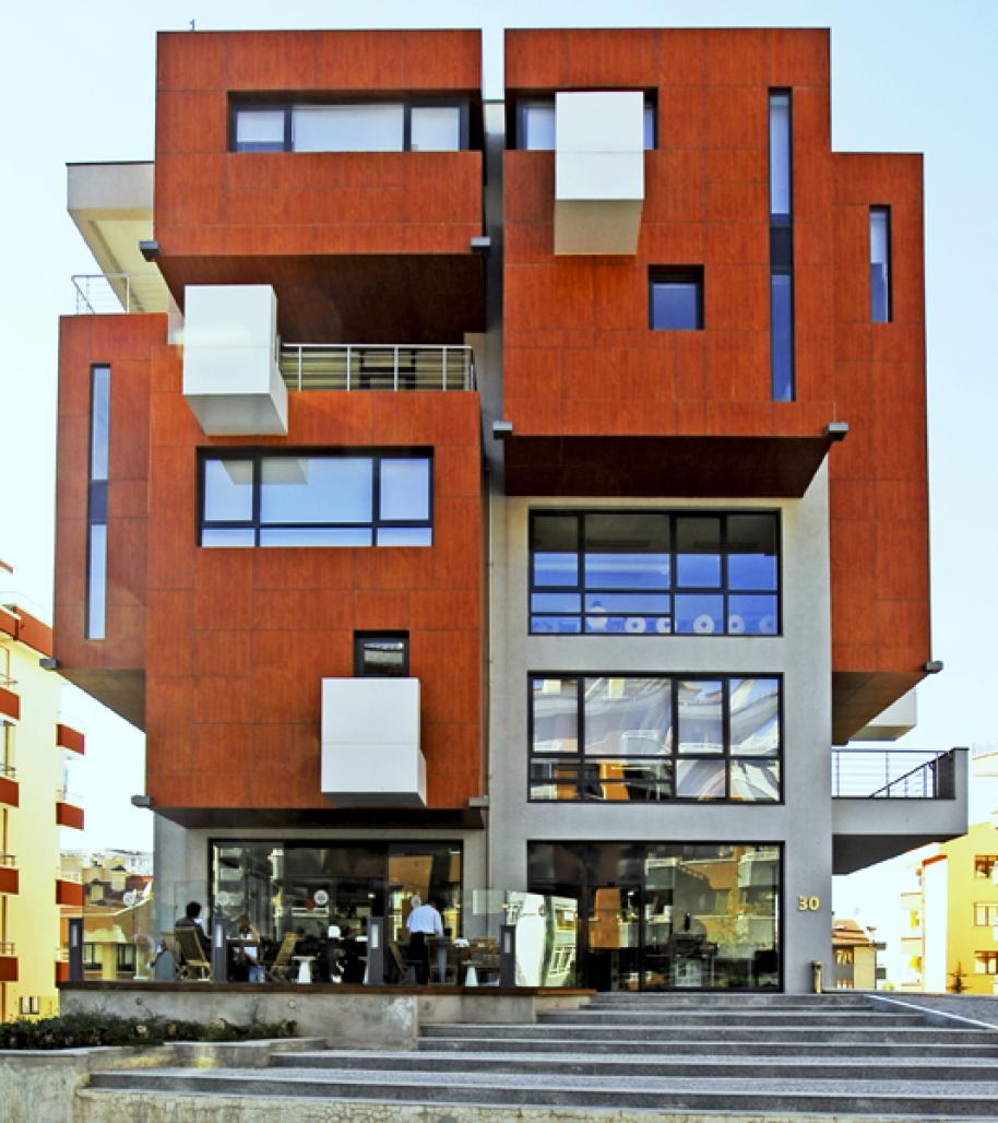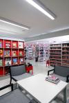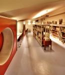 1st basement floor opening to the side street of the structure is the media centre. A children library is located there in a separate section. The ground floor is the reception area and includes book sales unit and a cafeteria. Pedagogy unit and administrative units of the centre are located on the 1st floor. Classrooms on the 2nd and 3rd floors are shaped by transparent partition walls. Thus the light is transferred to the interior halls. 4th floor is dedicated to embassy officers. Therefore it has an access control and limited connection with the other floors. A movie hall and cocktail terrace are located on the 5th floor. Movie hall has layout of a multipurpose hall allowing various activities to be held. The 2nd basement is allocated to car park, technical volumes and archive.