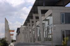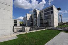 Precast concrete, glass and steel are the main and only materials in this project. On the main boulevard facade, colonnade path of steel and concrete emphasizes the rhythm of the units.