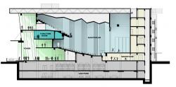 CONCEPT: The auditorium has been designed as a shell within a shell to provide an insulative layer between the interior and exterior. The function of the peripheral space is twofold: it provides a sound buffer from outside noise, increasing the quality of acoustics within the auditorium and it provides a thermal insulation barrier between the interior and exterior, reducing the air-conditioning loads and increasing the building energy efficiency. The building design responds to the solar orientation and capitalizes on it to conserve energy. The foyer and lobbies are situated on the south side with a floor to ceiling glazed facade so that they receive maximum natural light and there is reduced reliance on electrical lighting. The facade design has a prominent slant to afford shade to the foyer to reduce the heat ingress caused by solar gain which is complemented by an overhanging roof to amplify the effect. The large glazed facade is un-characteristic of a building with such a function but the architects decided that since it was a multi-functional building for the community it was necessary to have an open and inviting entrance, thus re-defining the typology. This 860-seater project includes integral sustainable design solutions that have been considered holistically to ensure that the building performs at maximum efficiency. PROGRAMME ELEMENTS: The programme of the building includes two primary groups of spaces - backstage and front of house. The two different programme spaces have been designed with different characteristics to refer to their function and user groups. The front of house has been designed with the auditorium guests in mind and therefore has attractive and ambient spaces that offer occasion to socialize. The asymmetry of the foyer draws attention to the spaces created and highlights playfulness in the architecture that reflects the informal activities that occur within. The internal balconies offer spill over spaces from the auditorium that overlook the entrance foyer. These inter-spatial links create a hive of excitement pre and post show because of the open and collective atmosphere. The backstage rooms have been designed with functionality and performers in mind, these rooms are efficiently arranged to reduce circulation interference and provide necessary private access routes for stage support and performers. The auditorium itself is designed with acoustics as a top priority. The design of the walls and ceiling are angular to deflect the sound waves in different directions so that there is no interference and the sound quality is high in all areas of the audience. The architects have specified acoustic wood panels for their resonant properties that allow voices to be amplified to the rear seats. The shape of the auditorium also encourages the sound to amplify to the rear seats thus ensuring that all members of the audience receive superior sound quality. The auditorium has been designed as a multi-functional space that can be acoustically modified depending on the performance. For performances with electrically amplified acoustics, that do not require resonance from the walls, dampening curtains can be drawn to adjust the space suitably. SUSTAINABLE DESIGN: The roof of the building has been designed with multi-layered aluminum finish metal roofing that is lightweight and highly insulative which gives it excellent sustainability credentials. A photo-voltaic array is planned for the roof installation which will deliver green power to the building and majority of lights will be high efficiency LEDs to reduce power demand. Specialized VFDs are specified for water-cooled chillers for air-conditioning, all secondary pumps, AHUs and motors respectively. CONCLUSION: The building comes with a low impact on the environment as a result of the architects commitment to superior environmental design. The architects hope that they will have an influence in improving the locality and community of Airoli whilst simultaneously positively effecting the wider environment.