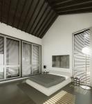 In terms of material layering, we focused on the combinations of materials found in the houses of St. Augustine, specifically the ones built out of tabby (masonry) and frame (wood). Additions and second stories were built out of wood while the original house and base were built out of masonry. This material expression added texture and scale to the urban fabric as well as a sense of warmth through the introduction of a natural material. In order to achieve this material expression the design proposes a white painted oak base and stained ipe top, rendering the program legible by emphasizing the public versus private distribution of the house. The white wood base defines the public spaces of the addition and provides an expansive, light atmosphere that, in conjunction with the open plan and the glass openings, extends the living spaces into the garden. The second floor’s darker wood siding defines the bedroom quarters and their servant spaces and provides for a warmer atmosphere. Conversely, volumetric layering occurs with the stacking of box and gabled volumes, laying one on top of each other to establish contrasts in form and contextual relationships. The gabled roof allows us to reference the existing 1930’s house inclined roofs. Finally, the balcony is reinterpreted as a flattened screened space which communicates the sleeping quarters with the front entry courtyard garden in the same manner as the balconies of St. Augustine’s houses communicated with the street level. As a result, minimalist hybridization is formulated by reinterpreting the well known contemporary approach of reduction of form to its essential qualities. By distancing from the homogenous application of material and formal manifestation, the term introduces a differentiated and varied strand of minimalism based on the configuration of pairs. This concept is achieved through the combination and coexistence of any two fundamental characteristics in architecture. At play in this proposal are volumetric (box vs gable), material finish (white painted oak vs stained ipe) and program (public vs private) combinations.