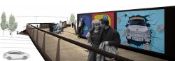LA PARTICIPACIÓN. El muro que acompaña a los usuarios a través de la pasarela puede ser objeto de reclamo publicitario, de señaléctica para el municipio o el centro comercial o como expositor y mural de arte urbano, en caso de que se crea conveniente dado su peculiar emplazamiento, hecho que evitaría un mayor gasto de mantenimiento y favorecería su conservación.