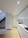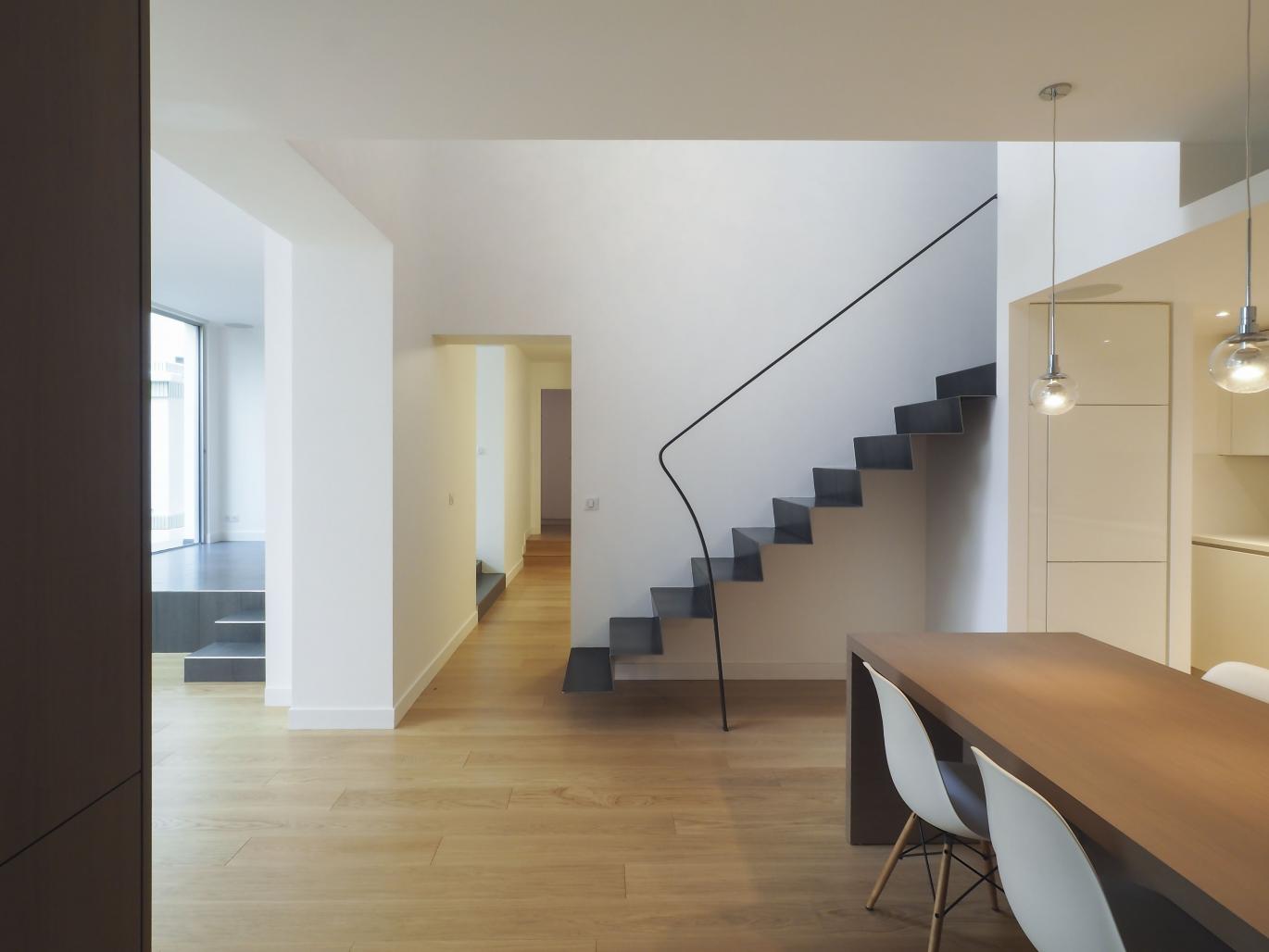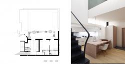 A double height is created in order to articulate the low and high and insert a crude steel staircase while lightness. A perpendicular horizontal plane succession create a circulatory movement of the space.