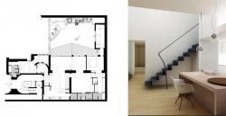 A first apartment is oriented to the courtyard while having a drill thickness of the frame which is a real handicap for the management of natural light. The challenge therefore is to carve the heart of the duplex to promote the contribution of light and view.