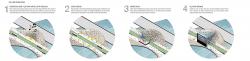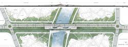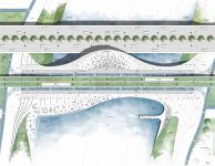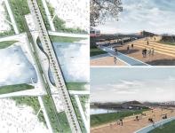 The separation of the slow, tranquil pedestrian movement and the fast vehicle movement is considered necessary to begin with. While the 21m wide vehicle highway makes its way to the opposite shore, the part of the bridge which serves to the pedestrians and the bicyclers, widens, shrinks, descends and rises back forming different kinds of structural forms and public usage.