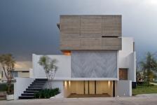 X House is, in itself, one basic diagram with a simple scheme that gives out a strong faced house. It is a combination of white concrete bodies, marble plates and design metallic shutters.