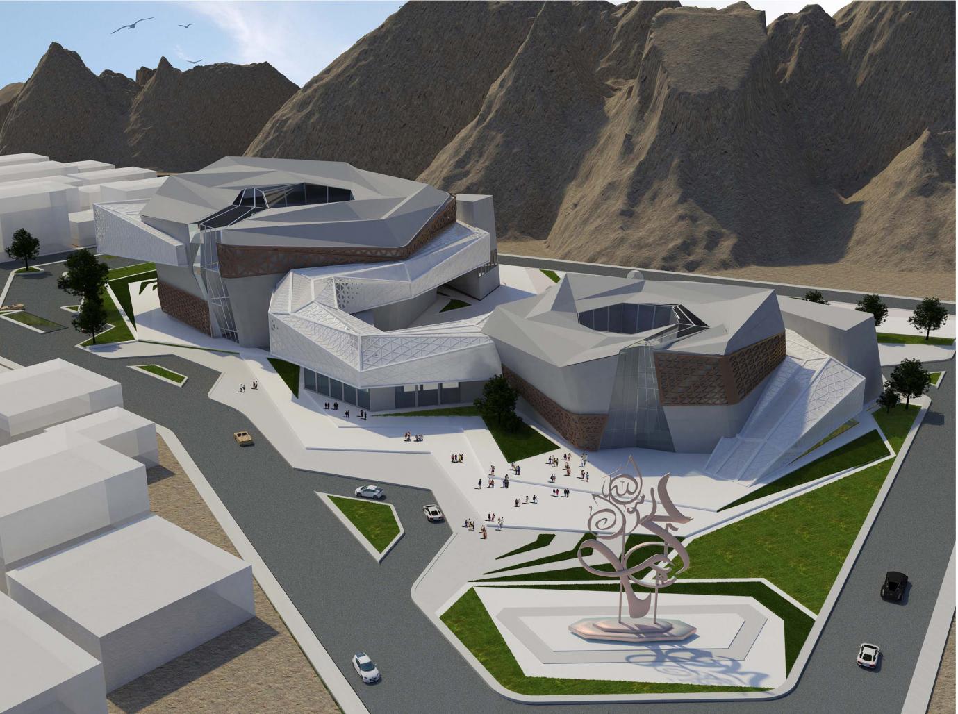 The museum talks about the prophet life and the message he came with which is the massage of Islam. when the prophet came with the massage of Islam it covered all life aspects, and there is three main life aspects which are mental, relations and behaviors so i started with three masses each mass represent one of these aspects after that i added a long mass connecting all these three aspects which is the museum, that museum starts in the ground floor and ends in the last floor to represent how the massage came as a small and end at the highest point.