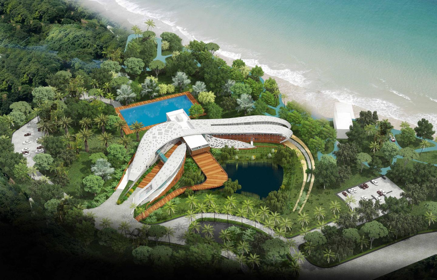 Being one of its kind of an Institute in Asia the project has been designed to strive a dynamic relationship between the sports player and the sea through its architectural language and spaces. Commissioned in 2010, through an International level competition organized by NIWS-GSIDC, Goa, the design brief stated the development of National Institute of Water Sports at Miramar, Goa as an Iconic building. It is the articulation of this temporary yet adventurous moment or a passage in time between the surfers setting foot into the sea to setting foot out of it, which forms the Architecture of the Building. The building itself is a take off point wherein its sole function is to be a transitional link between the man and the sea. Here the Architecture is in constant motion being pulled into the sea from one side yet tied to the shore on the other. The building too is ever changing, rising and falling just like the waves of the sea that twist and knot every surfer into its folds. The Architecture here mentally transports man in the midst of the sea.
