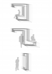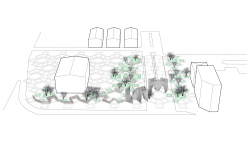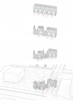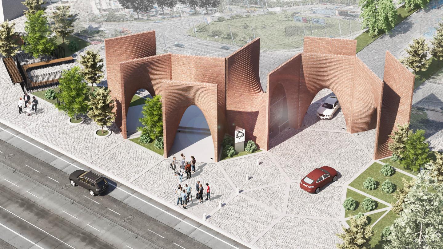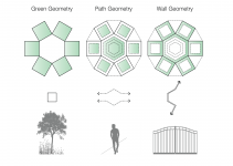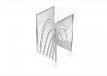 Proposal for gateway/security checkpoint to BMSU university in Tehran, Iran. The program required a vehicular entrance and exit, a security office with visibility towards both vehicular and pedestrian access, pedestrian access which is the primary access to the university campus and an integrated information kiosk. The design is developed from the implementation of minimal surface modules onto Persian geometric patterns which define flows and fields through the checkpoint. The minimal surface modules were developed to create space or direct movement depending on orientation. The Persian geometric pattern was implemented onto the site to organize movement or gathering points, as well as other micro-spaces such as benches, green areas, etc. The geometric pattern also dictates the orientation of the minimal surface modules which in turn compound the entirety of the gateway architecture. The goal was to create a public transition space or intermediary space between the public urban fabric and the private university campus, rather than a thin, linear, border which would traditionally separate these two domains.