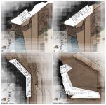 project design developed on the principle of sustainable architecture and combining modern architecture " using concrete , steel ... " and old way of building " creating caves in the mountains such as PETRA " . Construction and material - Use light construction " composite slab " for light weight and strength and make color of slab close to desert color . Contour line - The Slab shape response to existing contour line (mountain) . Minimal visible - Building between mountains will preserve the general view of the mountains and create new impression to visitors when they approach the building . Site force - Construction expansion as a result of the impact site forces (sun and wind..), by concentration on the shaded facade (North and East) of the mountain and avoid the south and west . Visitors behavior - Most visitors Wadi Rum are looking for excitement and adventure, they mostly practitioners of sports such as walking, camping, skydiving and climbing to see beautiful nature of Wadi Rum and stargazing , Therefore construction expands vertically to gives a sense of climbing and increasing excitement for the visitor upon arrival to The mountaintop, and providing the best view to wadi rum mountains, addition to creating an isolated place to stargazing .
