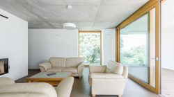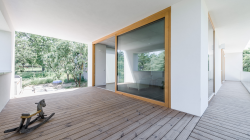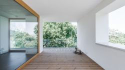 The basic concept was to generate contrast by opposing a traditional gable roof unit and a flat roof part.