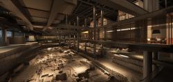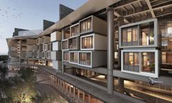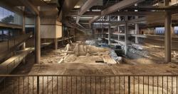 The main body of hotel consists of prefabricated hotel-room units stacked on top of each other where main circulation paths are connected with walkways and bridges. These semi-open spaces create an inner world where one can experience the climate and have visual contact with the excavation site. Terraces and gardens located under the canopy enhance the experience. The lobby, restaurant and lounge are located on the lower levels forming a relation with the archeological site. The building is assembled on site rather than being built there and reminds one of the temporary structures built by archeologists during the excavation.