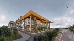 The location of the findings determines the exact location of the columns. The composite columns are situated on the trace of former riverbed that goes through the middle of the site and on the periphery of the site in order to minimize any potential damage. The canopy supported by these columns acts both as a marker for the archeological park and as a platform housing the ballroom, meeting rooms, swimming pool and fitness center. This platform creates vista points to enjoy the view of the city and St.Pierre Hill. Slits on the platform act as skylights for the archeological site below and provide a visual connection between the findings and the hotel amenities located on the platform.