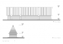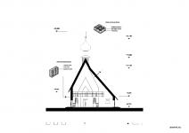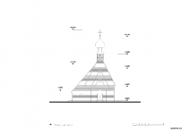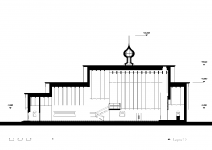In accordance with existing fire codes for public buildings, load-bearing walls are made of stone (for example, a monolithic reinforced concrete frame with silicate blocks filling), the roof construction is made of steel, with a decorative wooden roof outside of the structure (see diagram of typical units of roofs and facades on the section 1-1 of the temple).