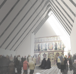 The rejection of the pomp and pomposity of the external structure allows it to conform more to the modern state of society; its an attempt to express Christian ideals of austerities, to shift attention from the external to internal. Thus, this project is an appeal to the roots of Russian Church architecture throught modern materials and construction technology.