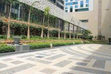 The pattern moved from three 5 meter diameter circular patterns at the entrance, to a 150x150mm grid of Light Grey Granite in Chiseled finish and Black Granite in Natural Split, providing that difference in texture and cobbled feel. The 150x150mm grid meets the Port Cochere or the drop off of the hotel in a circular pattern, cut in radials of 300x300mm paving in Black Granite (Chiseled) and Light Grey Granite (Chiseled), ensuring limited maintenance and hassle for ladies who prefer high heels. The Function Lawn drop-off uses a combination of different finishes in Black Granite in a radial pattern. And flowing to larger, more Indian inspired patterns on the pathway to the banquet.
