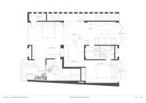 The Nizzamudin residence is planned as an upside-down house with a rooftop garden and pool, moving down to the living and dining areas and further down to the private sleeping spaces. The scheme responds well to a tight location, compact site and exciting client expectations.
