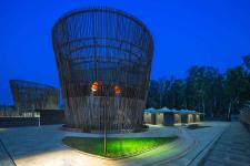 The exposition halls are three linear vaults of ascending widths in plan, forming one large space that can be divided into three as required. Colorful flowering creepers that soften the scale and help temperature control further cover the steel sheeting on top. The food court will house 48 stalls from different places and celebrate the taste of India.