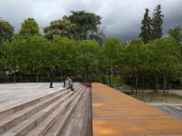 This new and very busy public space gives onto a wide wooden terrace that hovers above the Esplanade des Quinconces on a level with the foliage of the linden trees.
