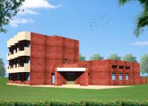 The building will provide dormitory-type accommodation for 72 students. Each dormitory will accommodate three students and has provision for built-in wardrobe and an independent balcony which is an ideal place for sit-outs in fair weather. The residential wing of the hostel block has been designed as three-storied while the common areas like the dining hall, entrance hall, and kitchen are kept single storied. Each floor accommodates eight dormitories, a toilet block and a staircase block. The dormitories are arranged in a staggered configuration which helps in providing desired privacy to each resident. These dormitories draw access through a free-running corridor which leaves voids on both sides. These voids help in providing sufficient cross ventilation and natural light, and reducing noise level in interiors.
