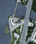 A peak of gathering sceneries as a concept for the Observation tower, is thought as a three-dimensional flow where the metaphor of the three roads, three bodies of the river will be shaped into a mountain that refers to the Jianfeng Mount across the river, on the other side of the waterfront. Three bodies will converge into a central vertical element to form the tower, and among these two will be bridges that connect a smaller island designated as part of the park and the other one linking the other side the near neighborhood.