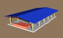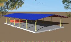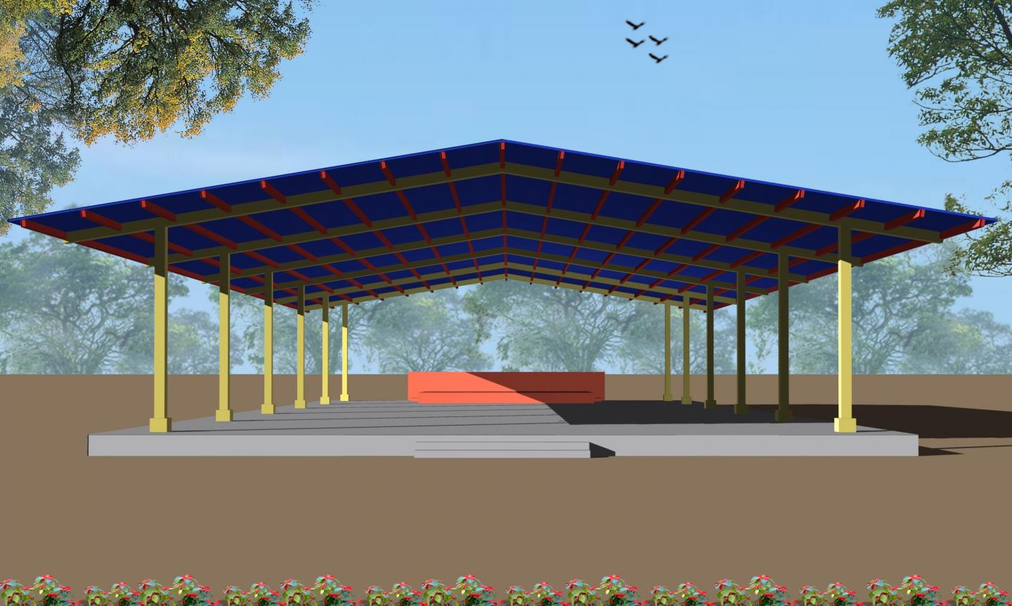 Government is planning to provide very low-cost community centres in villages in Punjab. It will be a place for community gatherings -marriages, religious functions, political get-togethers etc. Since these centres will be constructed in many villages, the budget provisions have been kept very low. As a result it was decided that only a sheltered hall -open from sides, with one stage will be provided. The other provisions will include a boundary wall, gate and a toilet block. These are just basic facilities required for small gatherings in each village. the hall has been designed in pre-engineered steel structure which will be very economical and easy to construct as compared to RCC structure. The other consideration for design was very low maintenance, rather no maintenance for the centre as there will be no funds afterwards for that.