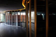 The embryo shape of the library is finished in translucent glass so the activities can be seen as faint shadows dancing on the wall. The diamond shape is carried through the plan, creating courtyard that allows natural light and fresh air into the building.
