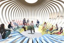 This transportable landmark will begin its journey in Syntagma Square in Athens, before completing a journey across the most important Greek cities. This project thus aims to transmits the beauty of Mediterranean / Greek values on a global platform. A contemporary agora, the space will also host many different activities, ranging from inspiring talks, concerts, debates, and theatre.