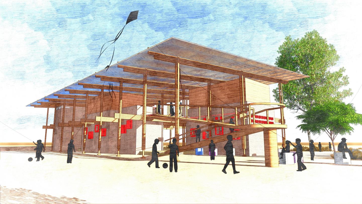 Schooling condition for remote areas in Africa is very much difficult. If a boy or girl wants to go to school he or she have to walk for miles. K.Y.M. is a NGO which has set up a program to build 1000 field schools for remote areas in Africa. We proposed a design solution for how that school should be.