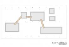 At early phase the school will accommodate approximately 60 students. The roof levels of ground floor are connected by several bridges informally. These spaces will be used as playing spaces for children. Students will get there by informal ladders.