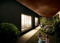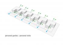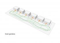The project follows a different path. The focus is shifted to the quality of light in space and quality of experience in the exteriors. In this respect, the buildings are carefully shaped to create a front garden that enables plenty of light and a good view into the daily used interior spaces. Taking advantage of the steep slope of the site, a second, more private garden is created on the rear facade, which provides a different type of exterior experience for the bedrooms.