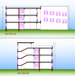All the functional requirements of the Institute have been well accommodated in the compact three-storied block. A wide staircase and a ramp provide vertical access to all the floors. Wet areas i.e., toilets have been placed at one corner and these areas are vertically stacked on each floor for functional efficiency and economy.