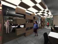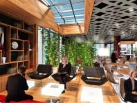 The buffer zone is accessible from the work zones and it will be used as relaxing area for the employees. It also helps the sound insulation from outside.