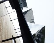 The characteristic double facade with reflecting horisontal lamellae fronting a wood cladding is developed in collaboration with Danish artist Jeppe Hein. Instead of creating an isolated piece of art work Jeppe Hein and ADEPT has developed the competition design for the facade into a detailed and refined expression with an immateriality that mirrors its surroundings and the people in it with broken reflections. The lamellae are made from highly polished stainless steel while their wooden background is a siberian larch.